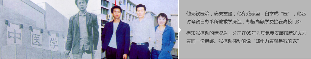 鄭州市力康假肢矯形器有限公司(簡(jiǎn)稱力康),是一家專業(yè)從事假肢矯形器的設(shè)計(jì)、研發(fā)、制作及裝 配的專業(yè)機(jī)構(gòu)。成立于1992年是河南省唯一一家福利企業(yè)。力康下設(shè)業(yè)務(wù)部、技術(shù)部、住院部、康復(fù) 部、售后服務(wù)部,并配有現(xiàn)代化的裝配車間和功能齊全的訓(xùn)練大廳,為殘疾朋友康復(fù)訓(xùn)練提供了可靠 保障。總經(jīng)理穿戴假肢多年,有著豐富的臨床經(jīng)驗(yàn)和親身體會(huì);多年來(lái),力康已為全國(guó)幾十萬(wàn)名殘疾 朋友安裝上舒適、美觀、耐用的假肢和矯形器具,使他們更大限度地恢復(fù)了正常的工作和生活?!爱a(chǎn) 品即人品”的質(zhì)量理念、先進(jìn)的技術(shù)、實(shí)惠的價(jià)格、完善的售后服務(wù)是力康取勝的法寶……